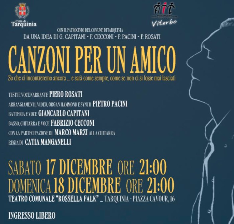 "Canzoni per un amico" a Tarquinia il 17 e 18 dicembre due serate di emozioni musicali