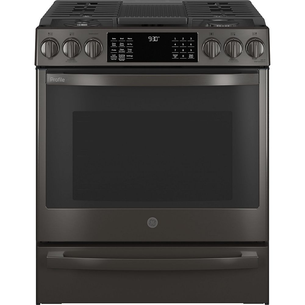 GE Profile 30inch SlideIn Convection Gas Range with WiFi Connect in Black Stainless The Home