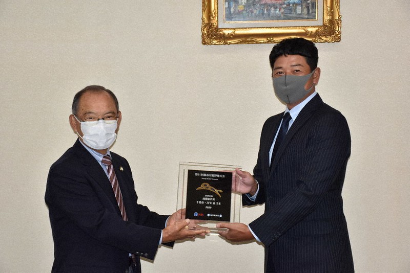 第91回都市対抗野球 JFE東に出場盾 前回優勝で贈呈「選手信じ精進」 /千葉 毎日新聞